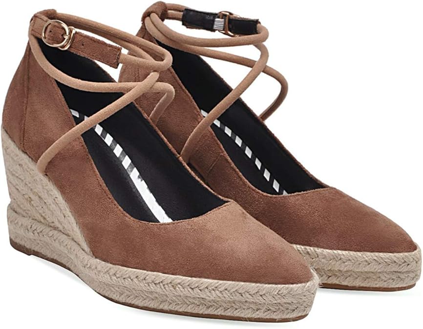 Chaussure compensée paille clearance, Espadrilles Chaussures et Sacs Angkorly Chaussure Mode Sandale Espadrille lanière Cheville Plate Bohème Femme Corde avec de la Paille tressé Talon Compensé 5 CM clearance