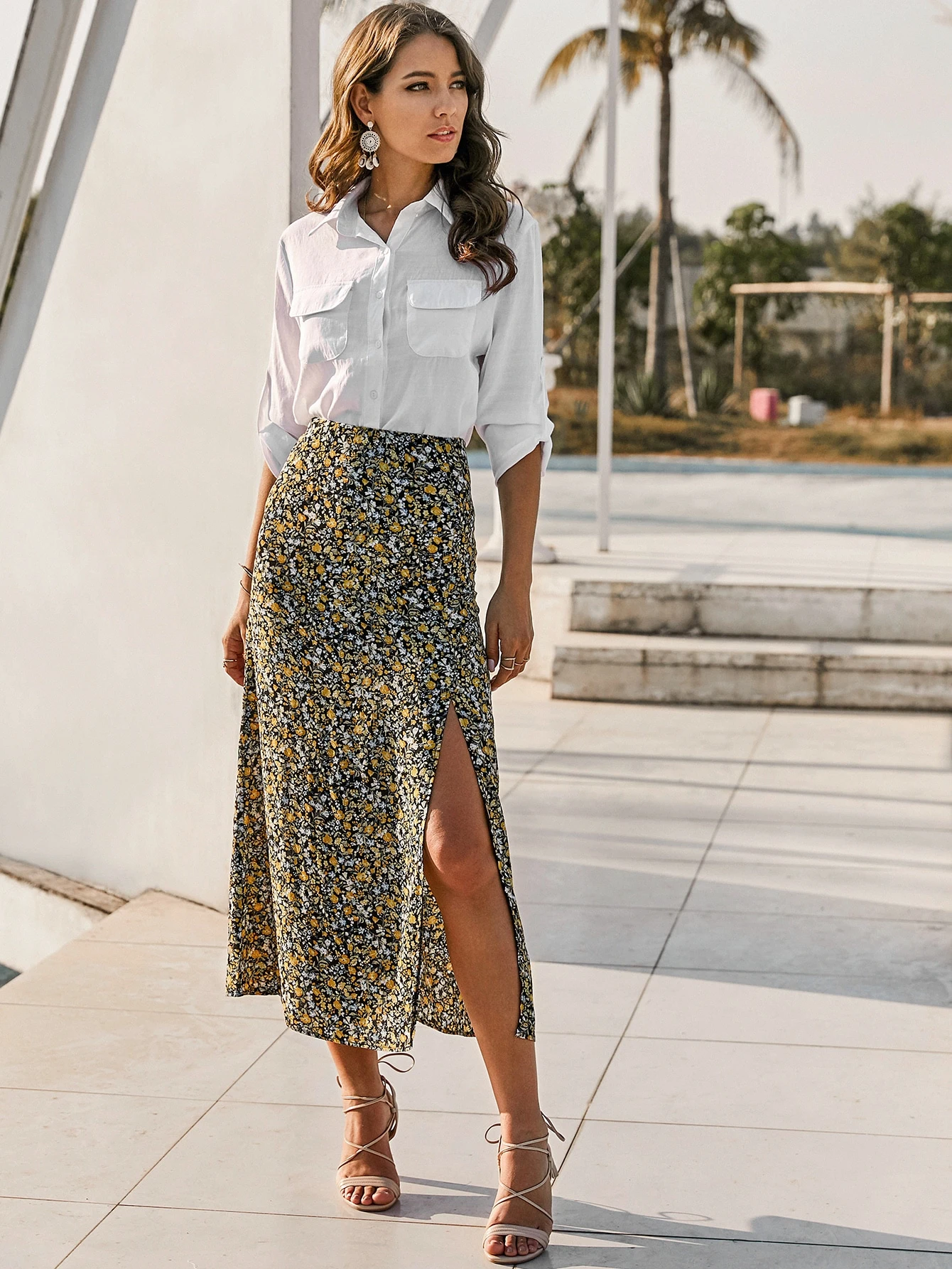 Jupe fendue fleurie clearance, Jupe fendue fleurie | SHEIN clearance