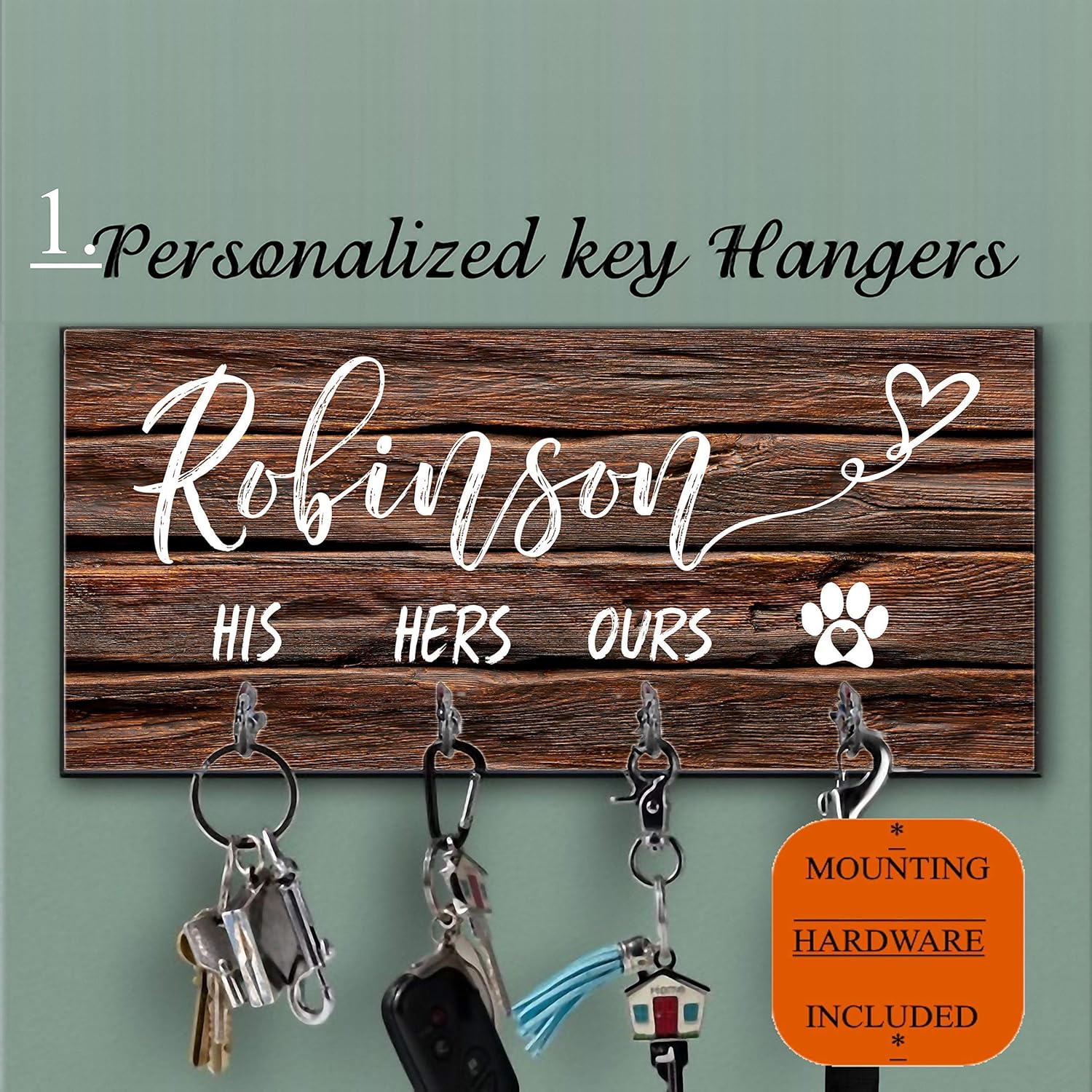 Key and leash holder for wall clearance, Wall Mounted His Hers and Paws Leash clearance