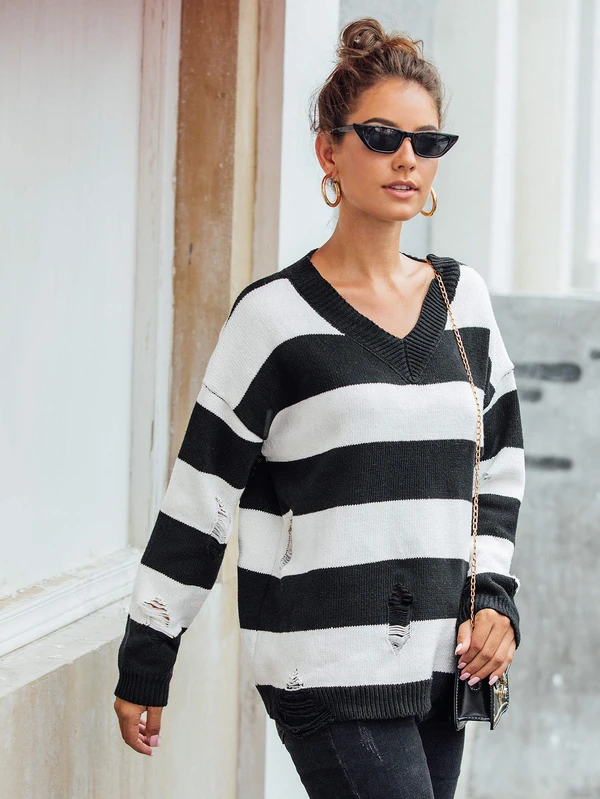 - Cheap Sueter de rayas blanco y negro