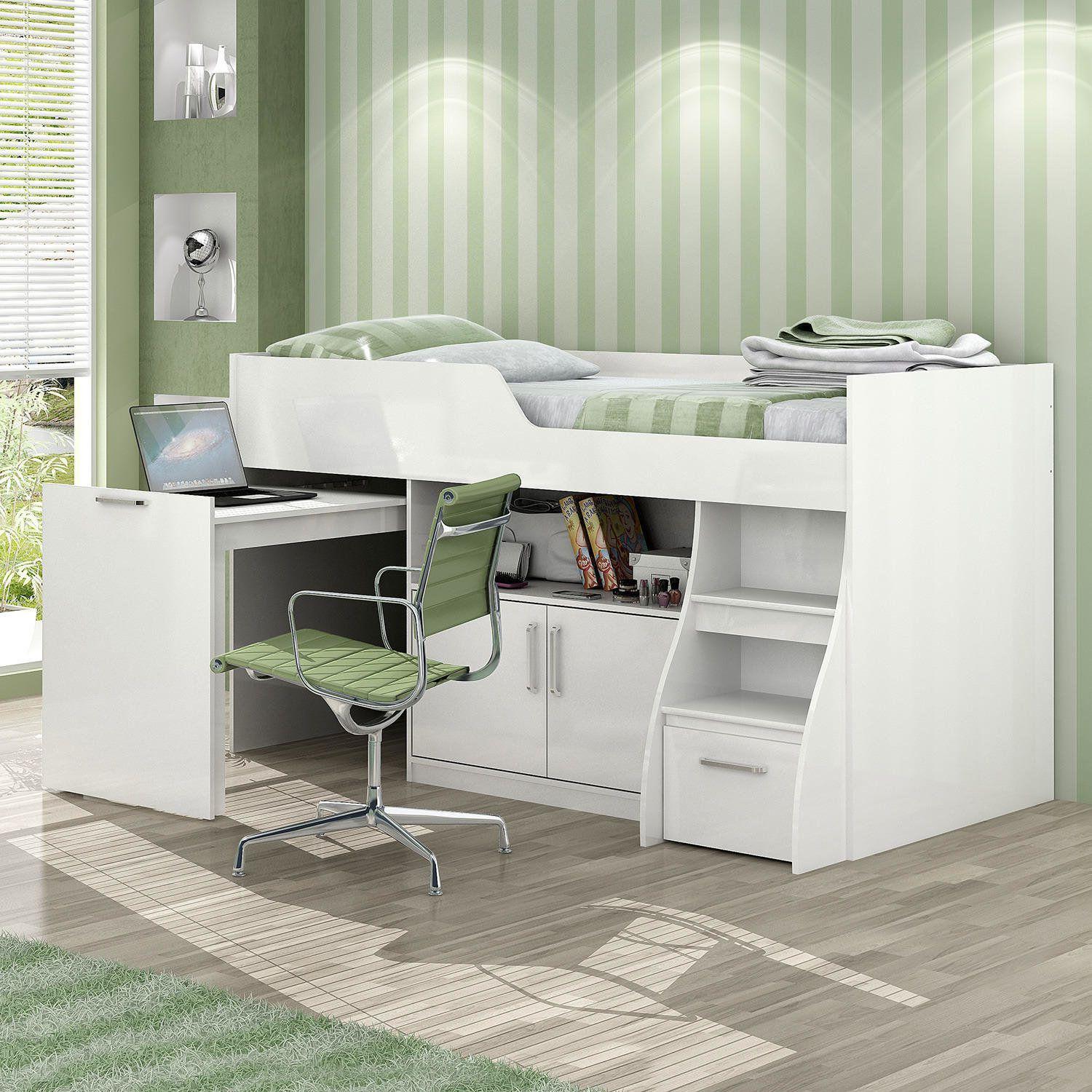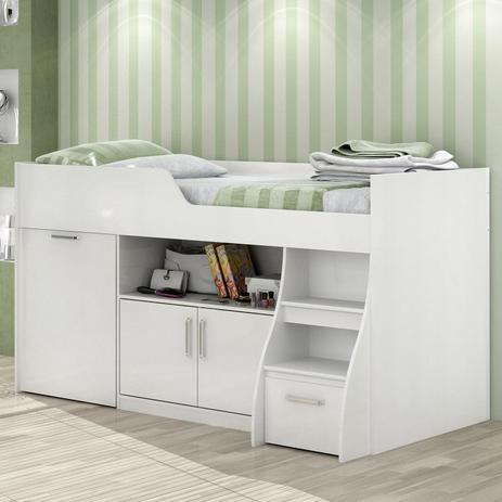 - Shopping Cama infantil multifuncional alta com armário inferior bianca cimol branco