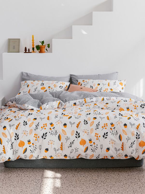 Jogo de cama shein clearance, Conjunto de cama com estampa de folhas sem enchimento | SHEIN Brasil clearance