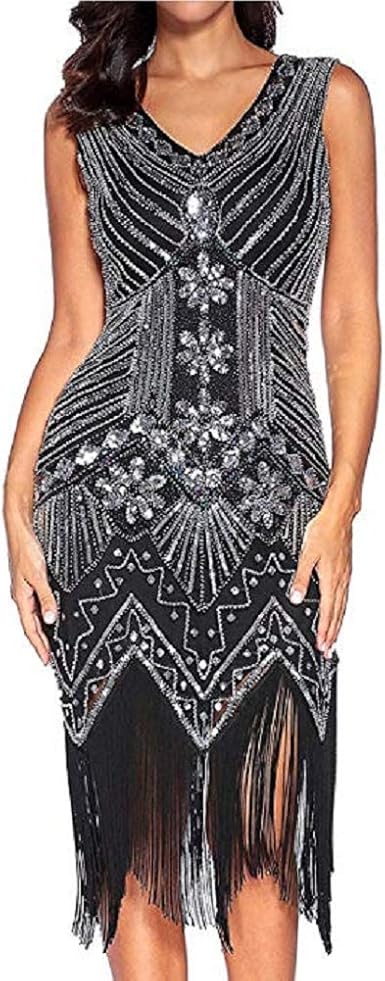 Robe style gatsby clearance, Robe longue évasée, style années 1920 Gatsby, avec perles et sequins, style sirène, grande taille, GA80 - Noir - 50-52: Amazon.fr: Vêtements et accessoires clearance