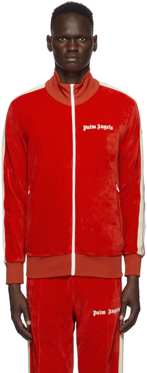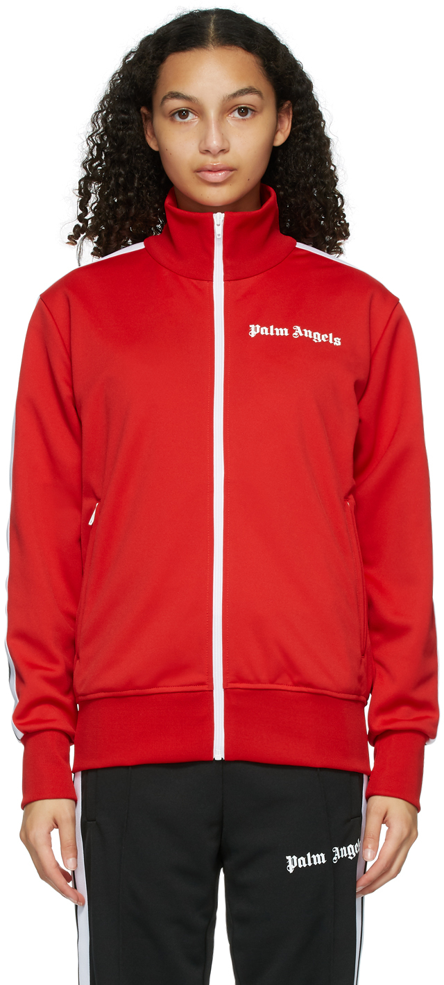 Veste palm angels rouge clearance, Palm Angels: Blouson de survêtement à capuche rouge Classic | SSENSE France clearance