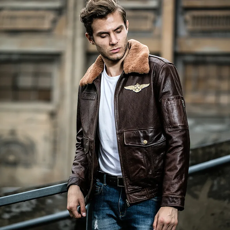 - Mens leather bomber jacket with fur collar sale online