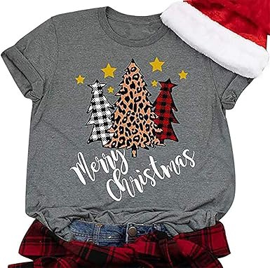 Navidad camisas clearance, Amazon.com: Feliz Navidad Camisas Plaid Leopard Árbol de Navidad Camiseta para las mujeres Carta Impresión Camisetas de vacaciones Tops Casual Camiseta : Ropa, Zapatos y Joyería clearance
