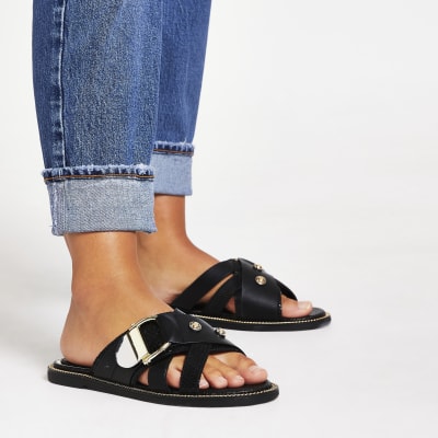 - Black buckle studded strap sandals clearance