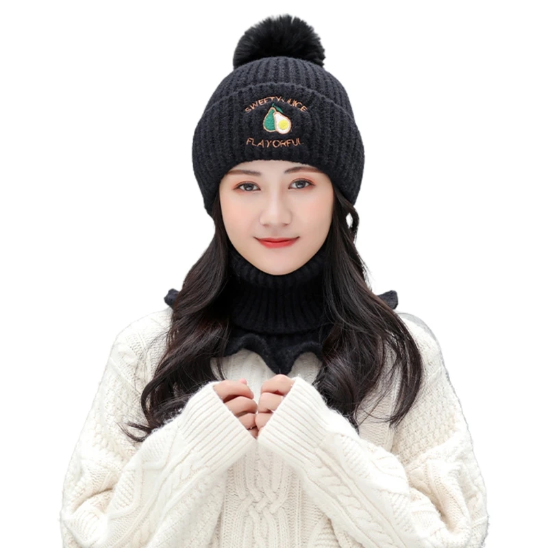 écharpe col roulé femme clearance, Bonnet et écharpe à col roulé pour femme, 2 pièces, tricot d'hiver, ensemble mignon avec pompon, broderie d'avocat, casquette chaude Skullies | AliExpress clearance