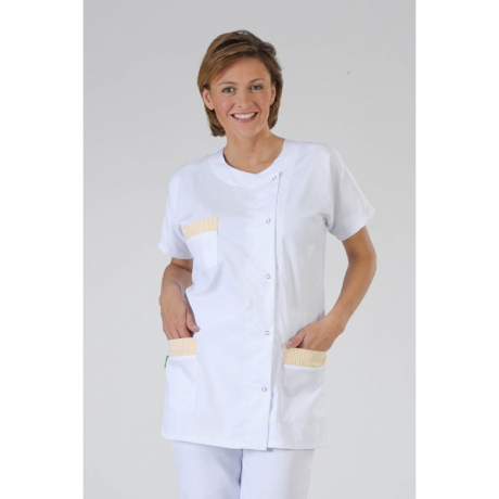 La bel blouse clearance, Blouse médicale Blanche Femme forme tunique col rond pas cher - label-blouse.net clearance