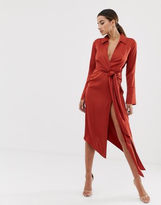 Vestido camisero saten clearance