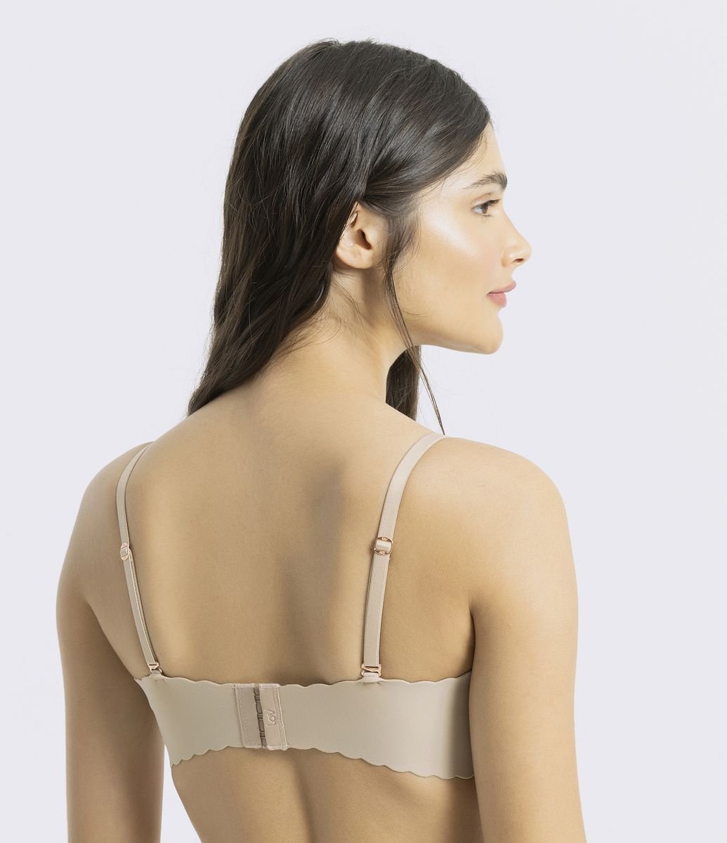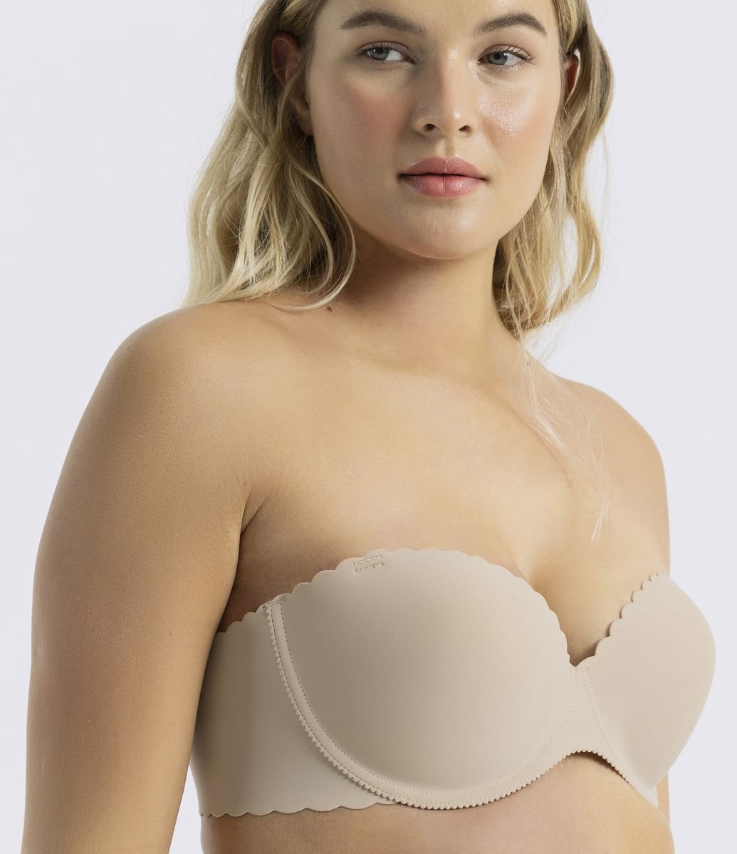 Sutiã lov tomara que caia clearance, Sutiã Básico Tomara que Caia Corte a Laser em Microfibra Liso Bege clearance