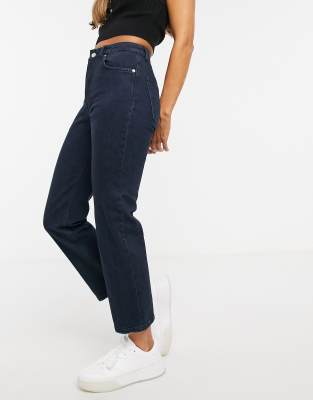 Jean femme asos clearance, ASOS DESIGN - Jean slim stretch coupe droite à taille haute - Délavage foncé Jeans femme clearance
