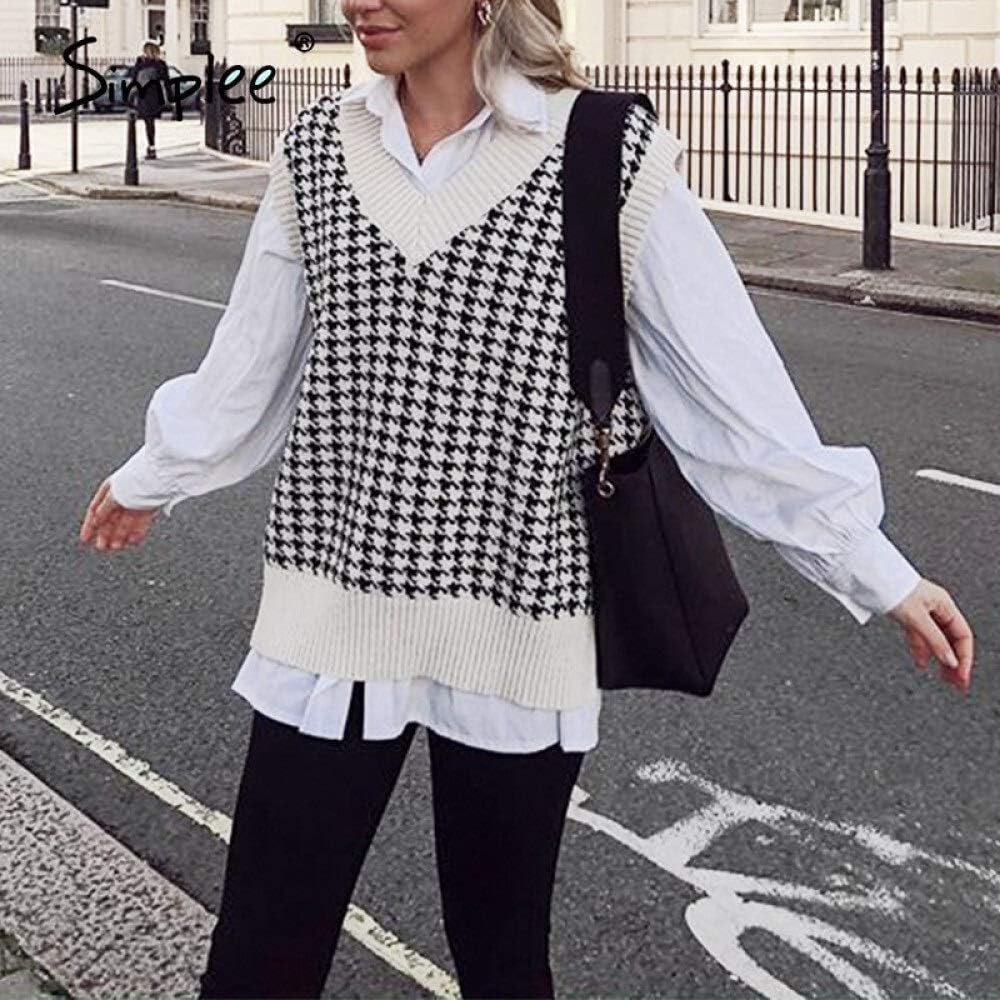 Jersey chaleco mujer clearance, Criquet Ropa aguaazulseafood.com Couleur : 1528, Taille : L Pata de Gallo Simplee Punto Jersey Chaleco suéter de Las Mujeres sin Mangas del V-Cuello de la Vendimia de Gran tamaño otoño Invierno clearance
