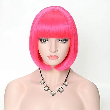 Bright pink bob wig clearance, Bob Cut Bright Pink Costume Wig | Women clearance