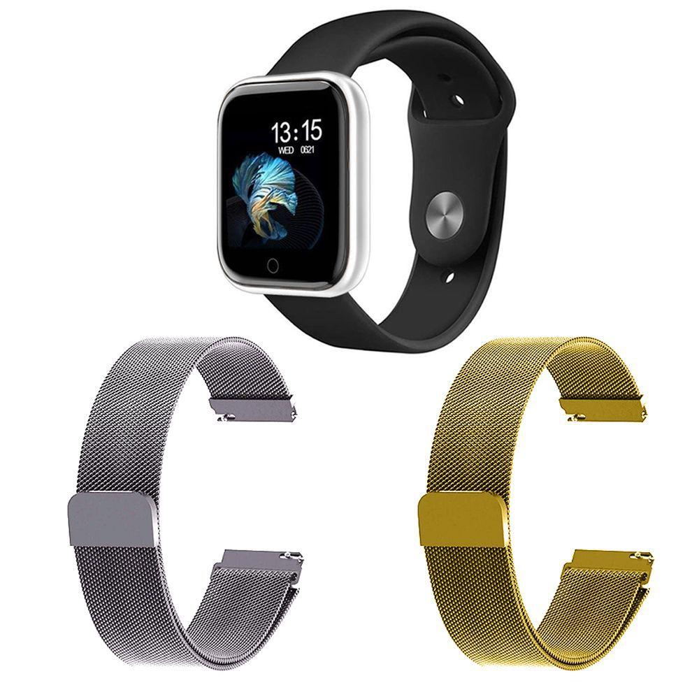 Relógio smartwatch 2 por 1 clearance, Kit 1 Relógio Smartwatch T80 Monitor de Saúde Prata Android iOS + 2 Pulseiras Milanesa Prata e Dourado - Smart Bracelet - Smartwatch e Acessórios - Magazine Luiza clearance