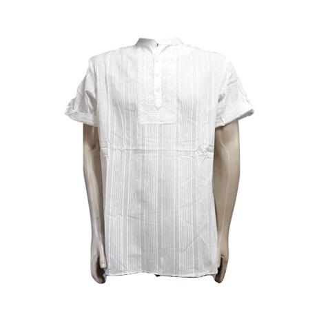 Bata masculina branca manga curta clearance, Bata Masculina Comfort com Amarração Manga Longa Branca clearance