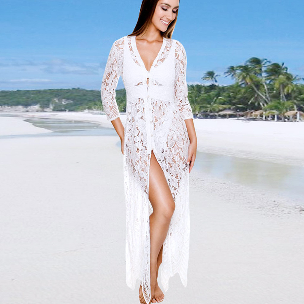 Long sleeve bathing suit cover up clearance, Women Loose Long Sleeve Lace Scalloped clearance