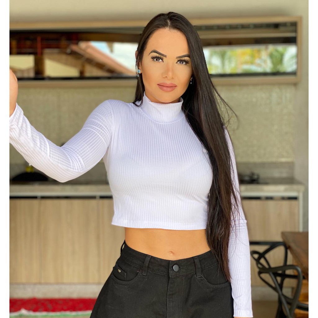 Cropped manga longa gola alta branco clearance, Cropped gola alta manga longa em tecido canelado/ Roupas femininas blusa cropped | Shopee Brasil clearance