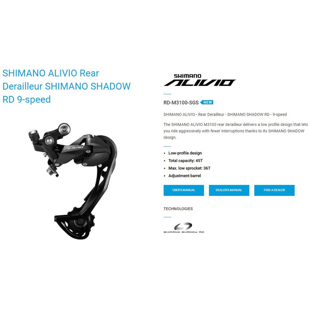 Alivio rd specs clearance, SHIMANO Alivio RD / Rear Derailleur clearance
