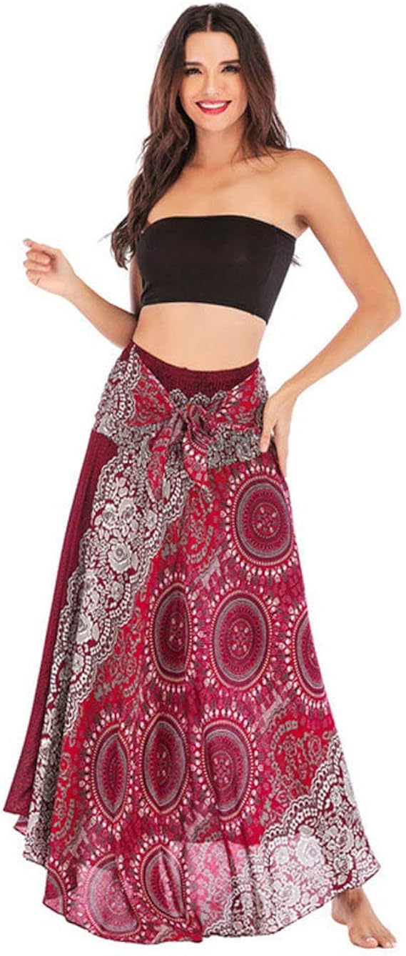 Jupe indienne femme clearance, Femme Taille Smockée Hippie Jupe Bohème Indienne Gypsy Taille éLastique Floral Halter Jupe rouge Rouge - Cdiscount Prêt-à-Porter clearance