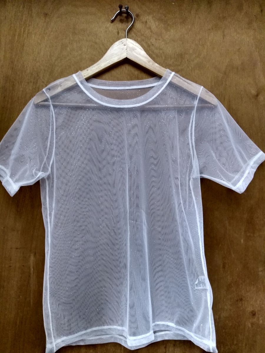Blusa branca brilhosa clearance