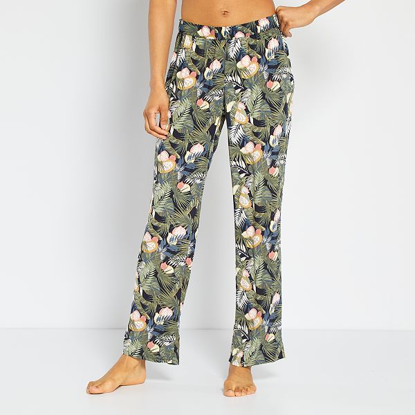 Bas de pyjama kiabi clearance, Pantalon de nuit fluide femme - marine palmier - Kiabi - 10,00€ clearance