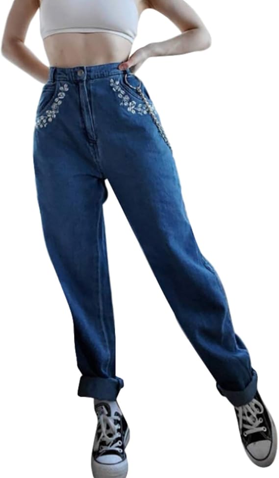 Pantalón holgado mujer mezclilla clearance, Katenyl Pantalón de Mezclilla Largo Holgado con Bordado Informal y Delgado de Tiro : Amazon.com.mx: Ropa, Zapatos y Accesorios clearance