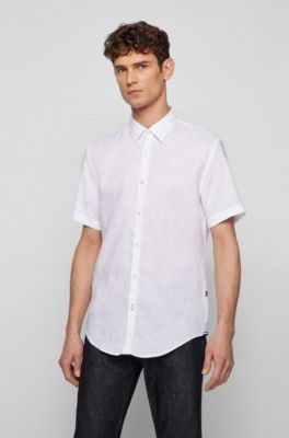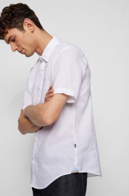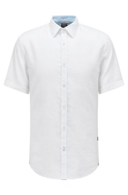 Hugo boss short sleeve linen shirt clearance, Shirts in White by HUGO BOSS | Men clearance