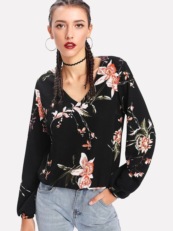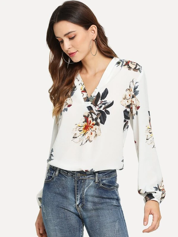 Shein blusa flores clearance, SHEIN Blusa de manga larga de flores y lazo en el cuello | Moda de Mujer | SHEIN México clearance