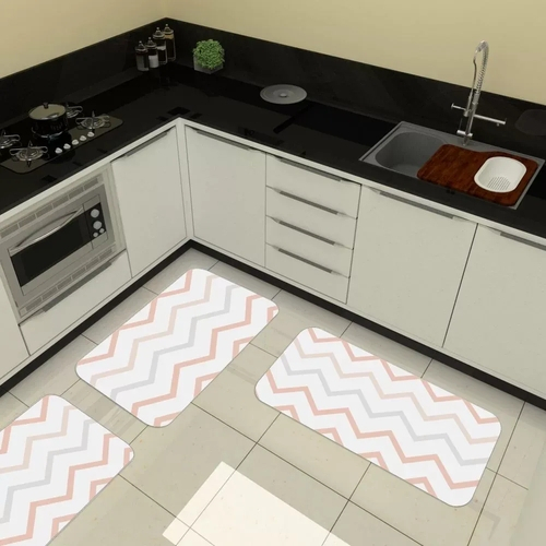 Tapetes para cozinha emborrachado clearance, Kit de 3 Tapetes para Cozinha Emborrachados Chevron Bege nas americanas clearance