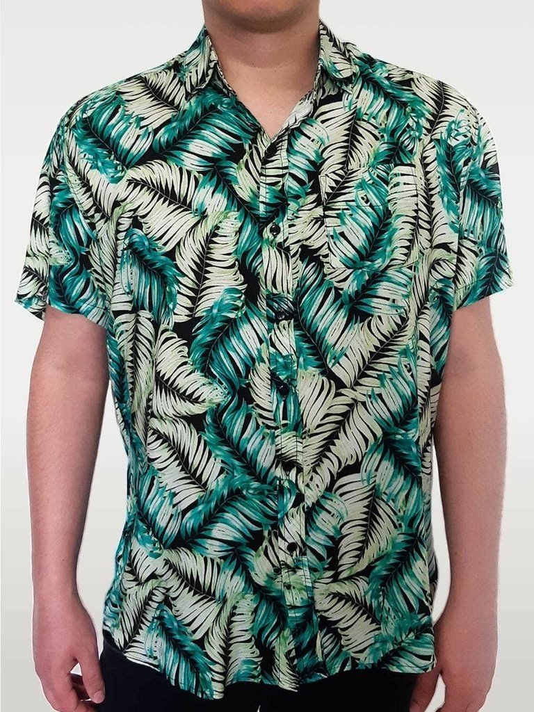 Camisa floral verde clearance, Camisa Floral Bananeira Preto e Verde Masculina Havaiana Manga Curta clearance