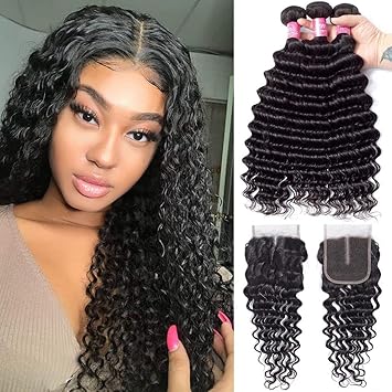Deep wave closure middle part clearance, 10A Brazilian Deep Wave Bundles with clearance