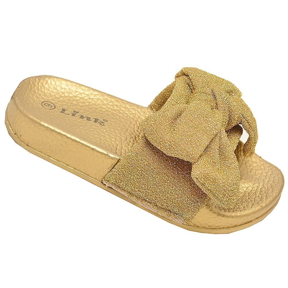 Girls gold slippers clearance, Girls Gold Glitter Ribbon Bow Accent clearance