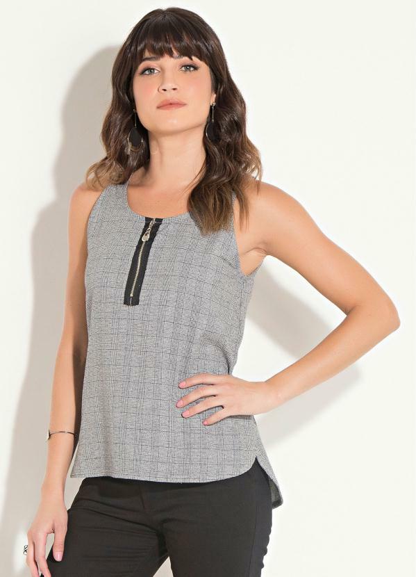 Blusa com ziper na frente clearance, Blusa Quintess Xadrez com Zíper na Frente - Quintess clearance