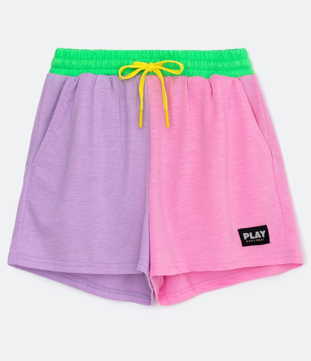 Renner short moletom clearance, Short em Moletom com Recortes em Bloco de Cores Multicores clearance
