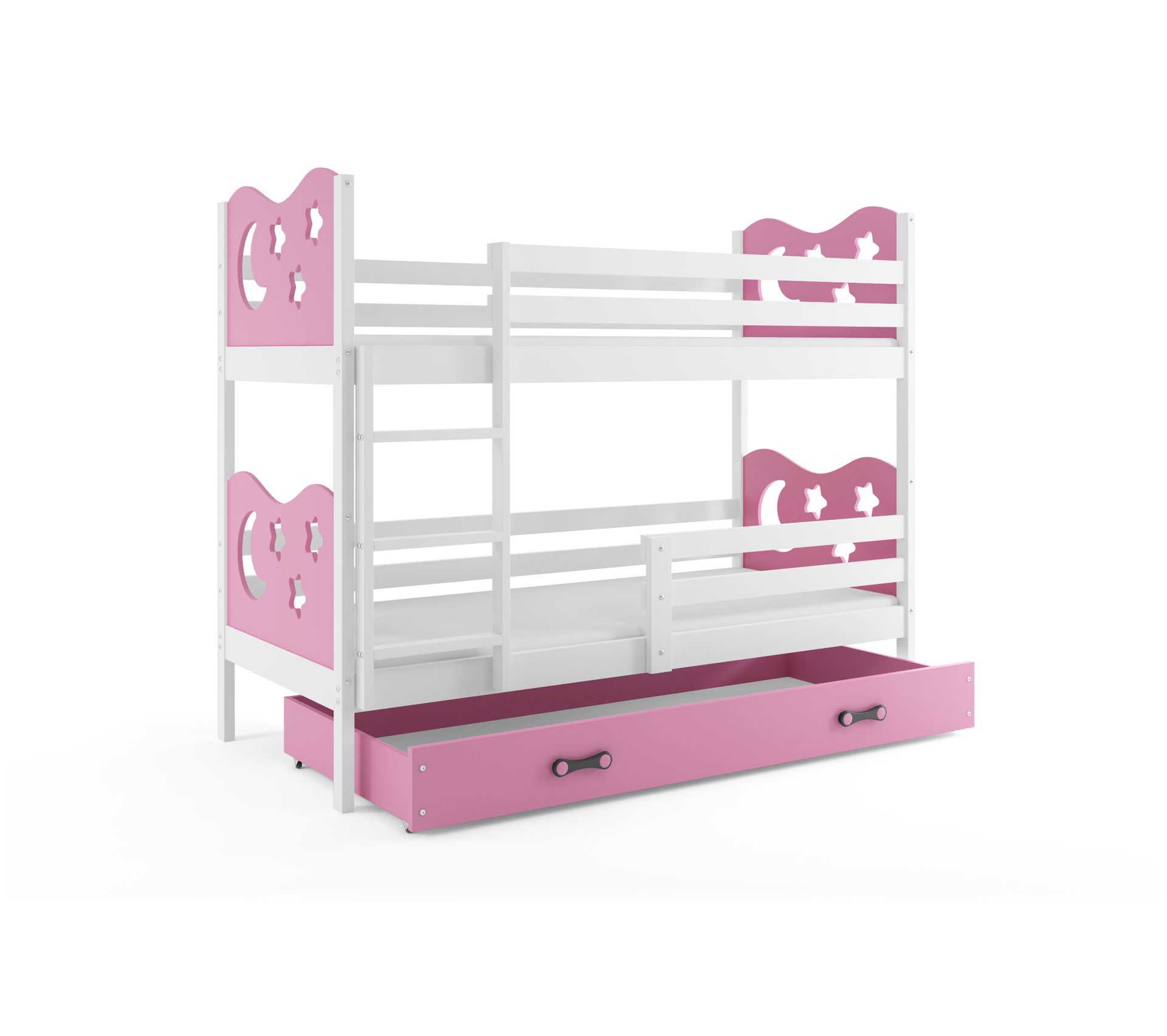Lit superposé rose clearance, Lit superposé Miko 190x90 avec matelas sommiers et tiroir en blanc blanc+rose Lits Cuisine \u0026 Maison clearance