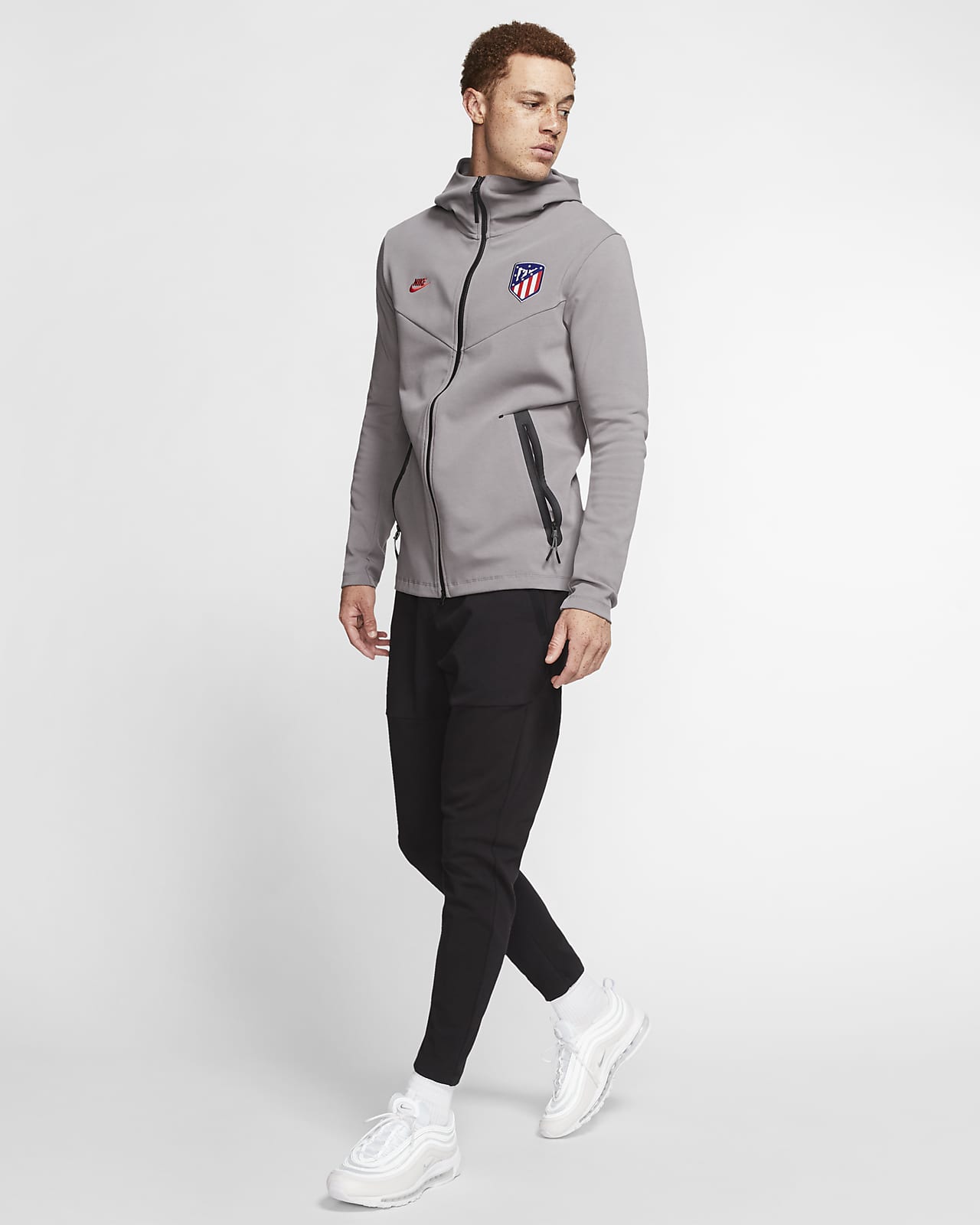 Atletico madrid tech pack clearance, Nike Atletico Madrid 19/20 NSW Tech Pack Hoodie - Gunsmoke/Sport Rot - Herren Fanbekleidung - Hoodies clearance