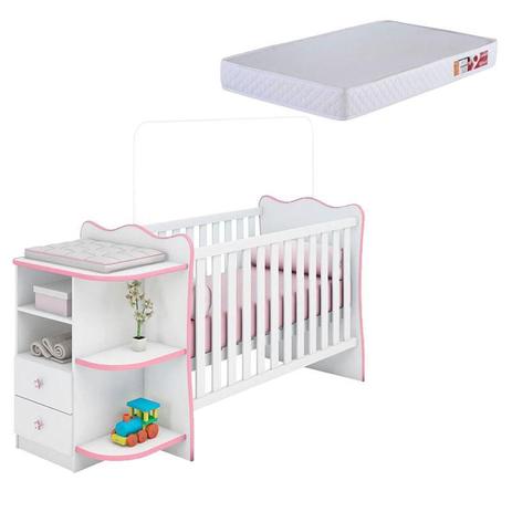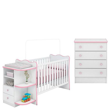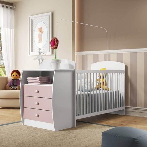- Berço com comoda rosa e branco shop