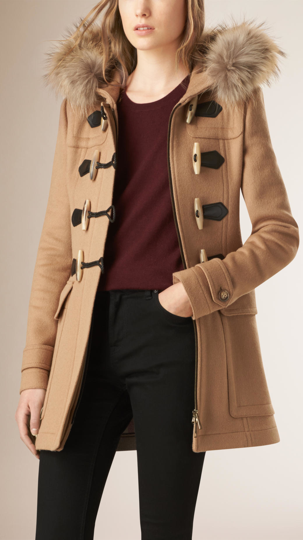 - Burberry detachable fur trim wool duffle coat sale