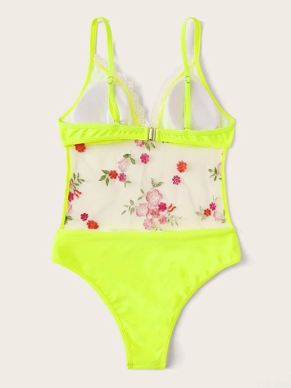 - Shopping Mesh floral embroidered lace trim monokini