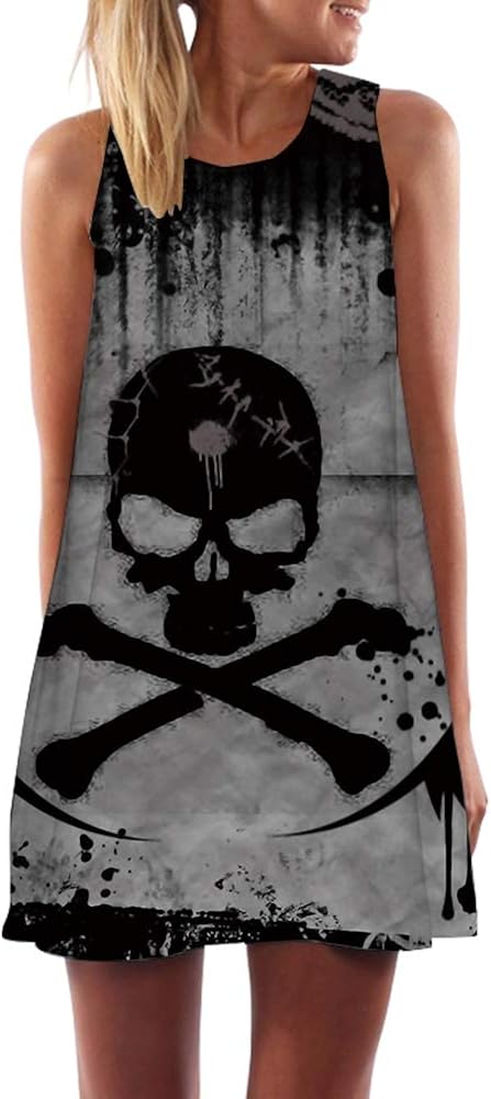 Ropa calavera mujer clearance, Mujer GYYWAN Vestido De Calavera Mujer Esqueleto Boho Gris Tinta De Impresión 3D Oficina Playa Gótica Ropa De Mujer Señoras Vintage Ropa vicela.jp clearance