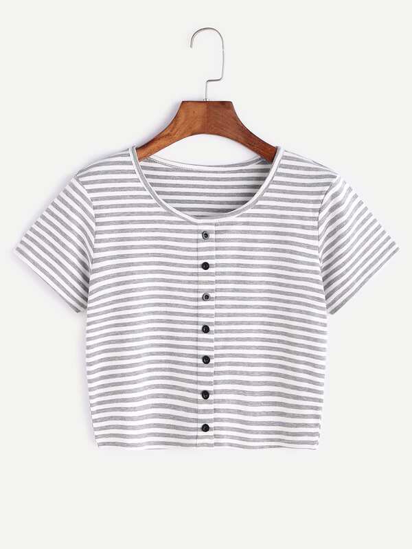 Camiseta corta con botones clearance, SHEIN Camiseta corta tejida de canalé con botón delantero | Mode de Mujer | SHEIN España clearance