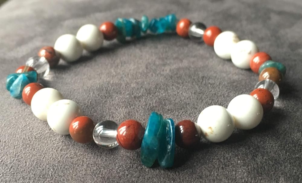 Bracelet minceur amazon clearance, bracelet Minceur REGIME lithothérapie pierre naturelle Jaspe Rouge Magnésite blanc Cristal de Roche Apatite bleue Bracelets élastiques clearance