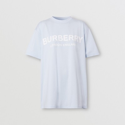 Burberry logo print cotton oversized top clearance, T-shirt oversize en coton avec logo (Bleu Pâle) - Femme | Burberry clearance