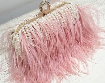Pink fluffy clutch bag clearance, Pink Feather Clutch Chain Bag clearance