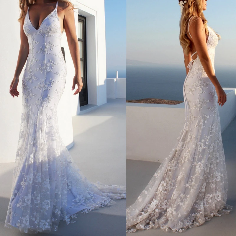 Vestidos de boda mujer clearance, Vestido blanco boda mujer Sexy sin tirantes profundo cuello pico encaje bordado hasta el suelo Vestido largo dama de honor Vestido de verano|Vestidos| - AliExpress clearance
