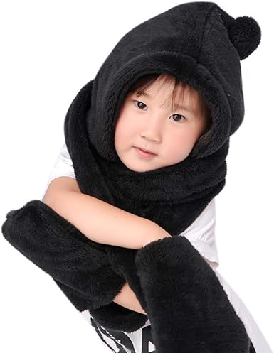 Children's hat scarf gloves all in one clearance, Kids Winter Panda Hoodie Hat Scarf clearance
