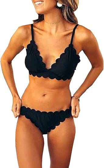 Scalloped bikini set clearance, LilyCoco Women Two Pieces Scalloped clearance