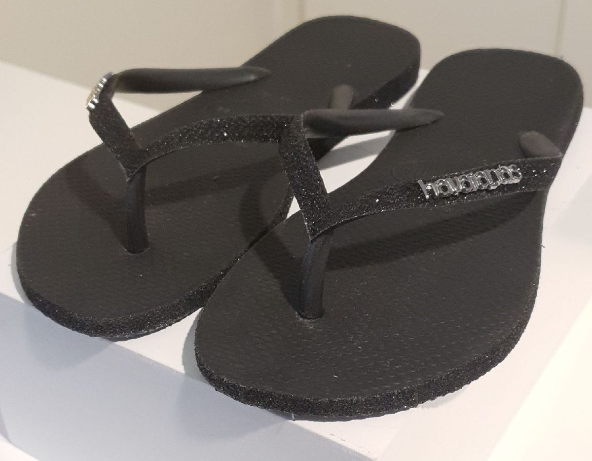 - Sandalia havaiana preta com glitter free shipping
