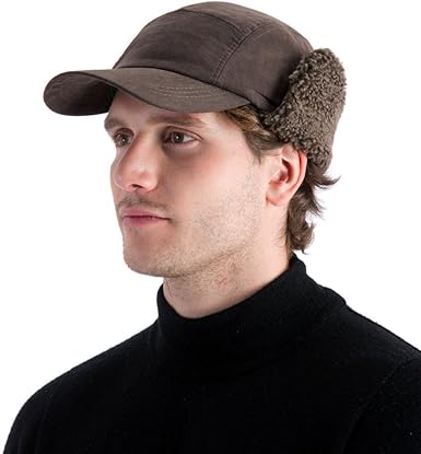 Trapper hat with peak clearance, Men's Brown Cap Style Hard Peak Trapper clearance